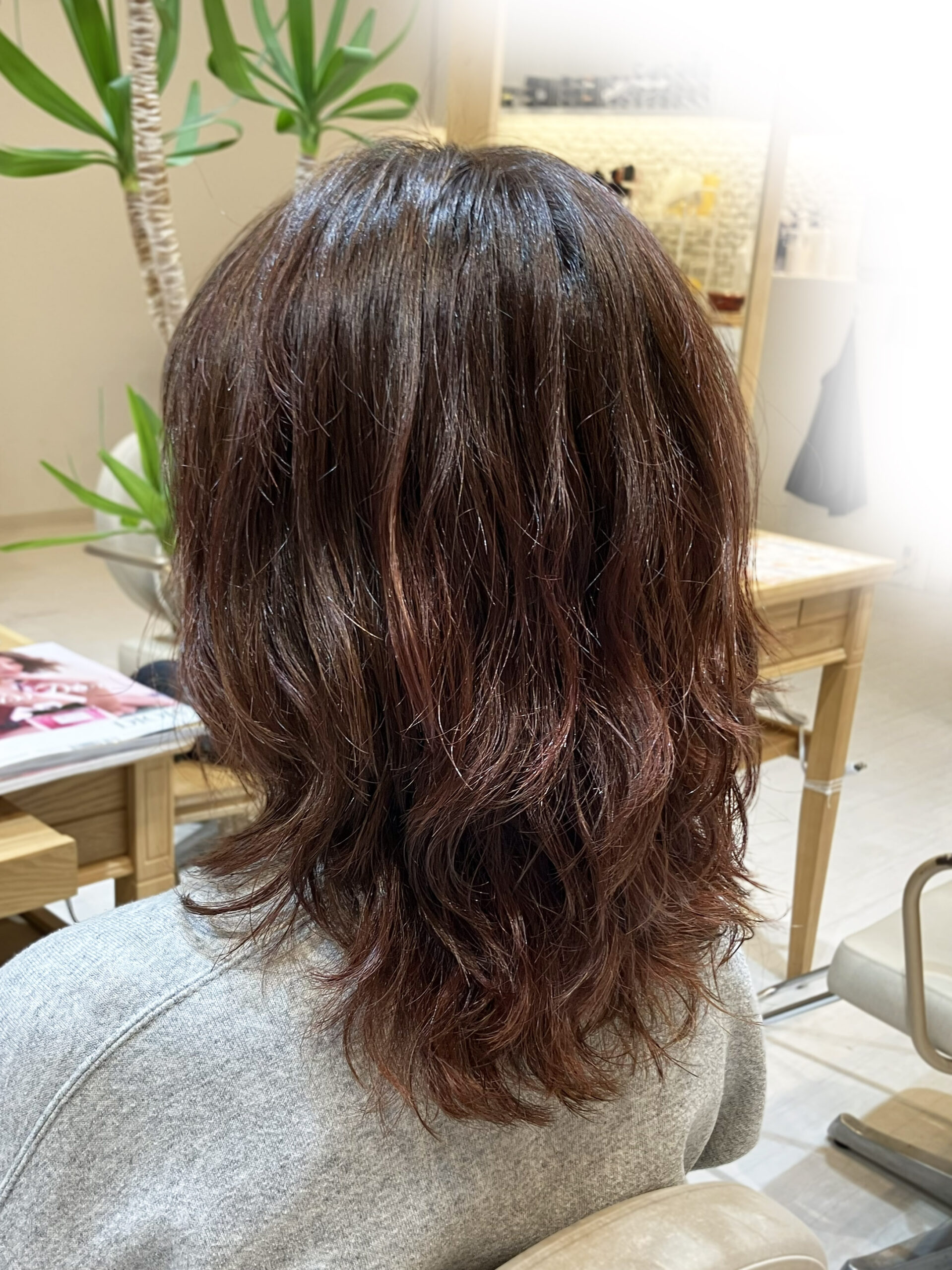 その後冷やす事で髪の状態が元に戻りパーマを掛けても元の髪の弾力がキープされます(^^)
